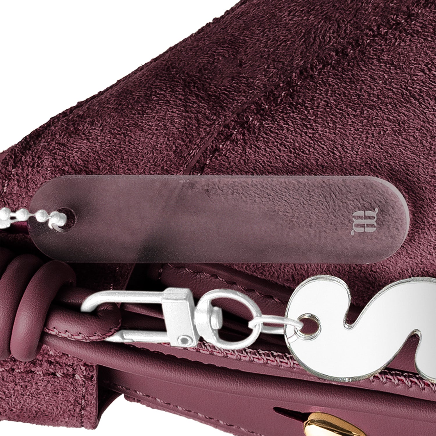 Enhance the true style of the Tanga Maxi with the sophisticated Cord charms, featuring a finely crafted cord, an engraved acrylic piece, and an alphabet. Secure the charms to the strap for a look that’s uniquely yours.